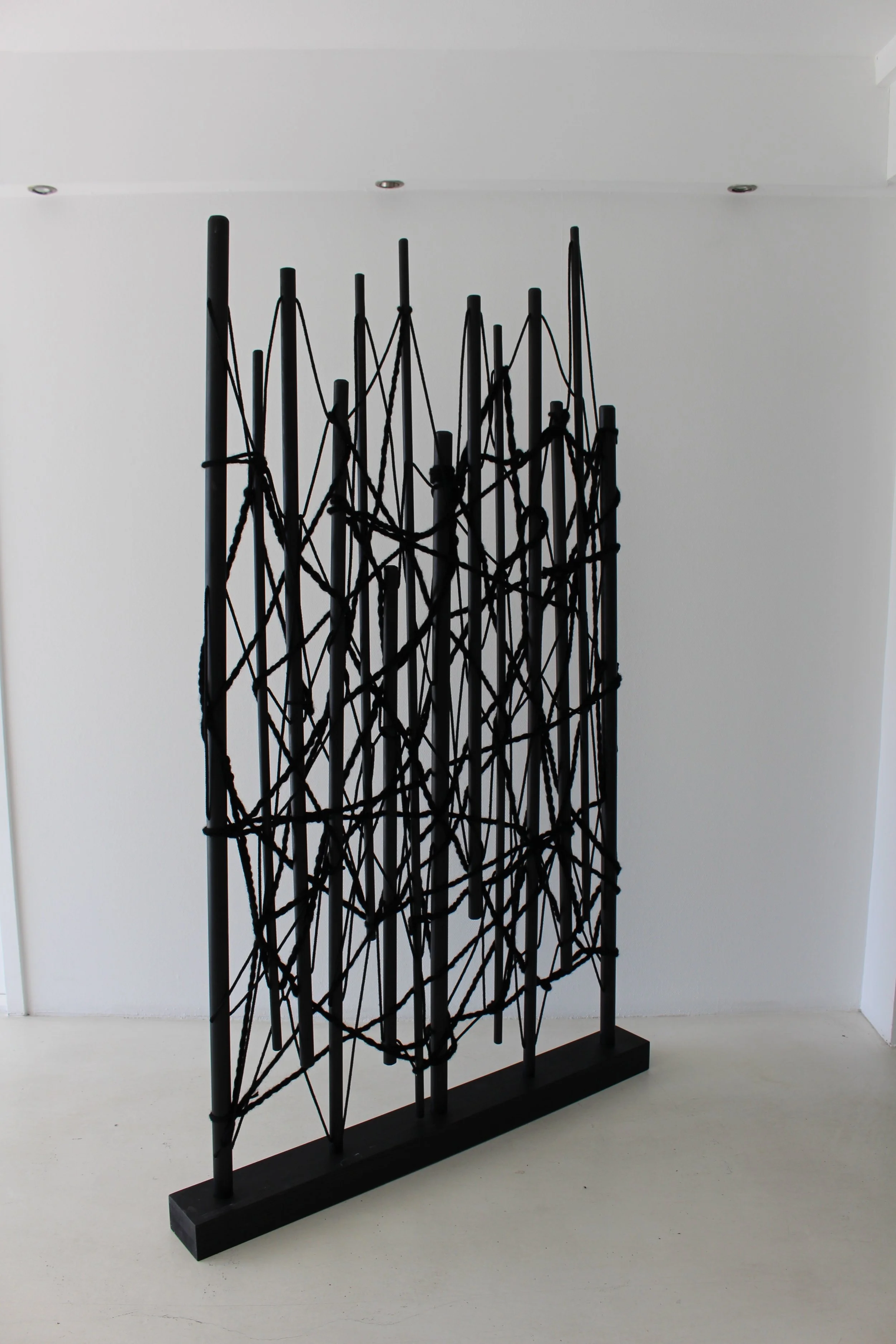 A room divider or a wardrobe wall. Nesting Walls draws inspiration from the shadows of branches, bird nesting and cobwebs in the pitch black forest.