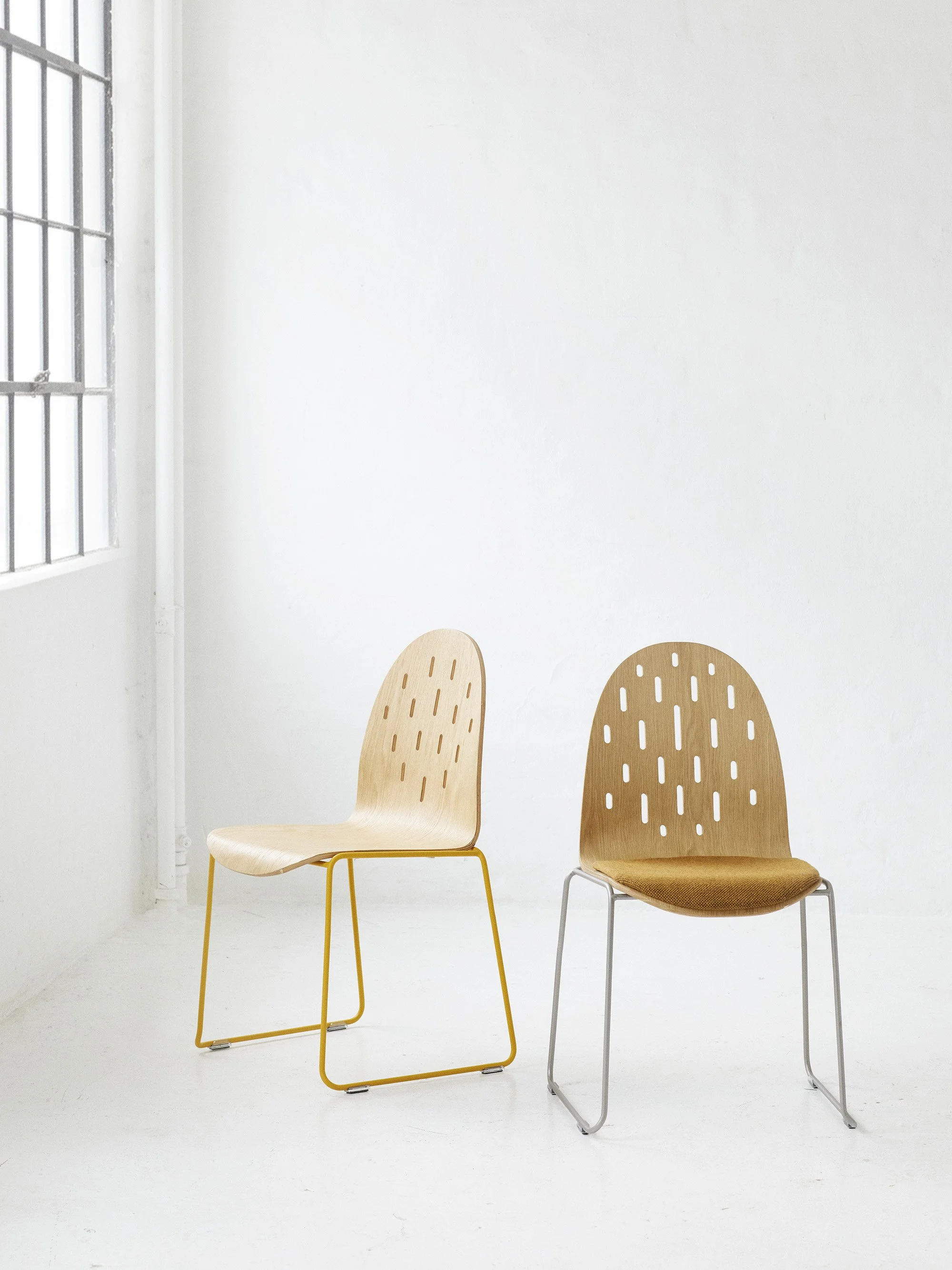 “The form of the Sophia Chair is drawn directly from the architecture of the Exchange Hall. The rounded ceiling beams, the vertical stripes of the columns, and the rhythm of the space are reinterpreted in its curves and lines.