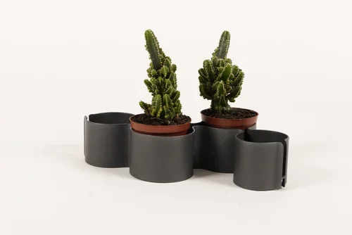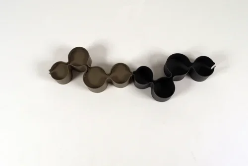 The term stjaki is Icelandic for candlestick. Inspired by chandeliers, Stjaki table top chandelier has a modern architectural form. The two sides are symmetrical and screwed together, allowing it be taken apart for shipping and storing away.