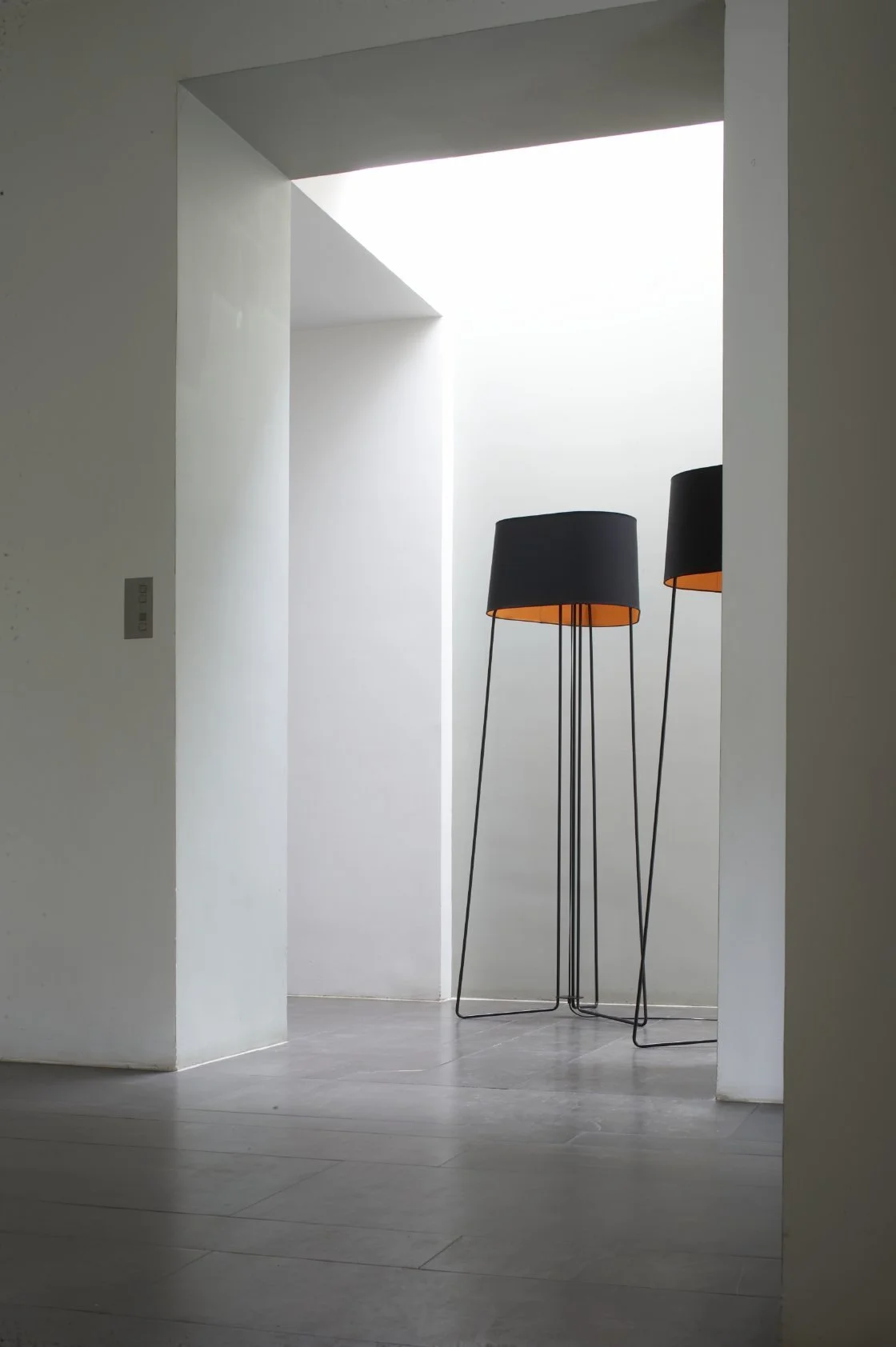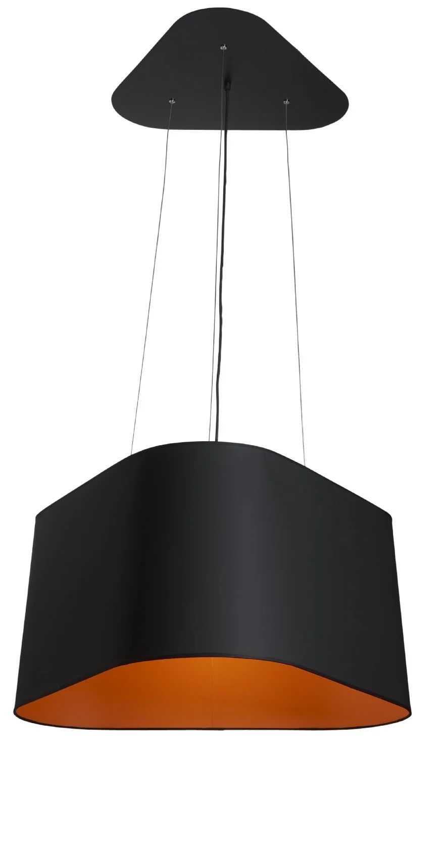 Inspired by the concept of the Trinidad and the connection of three entities. The two-toned lampshade, black on the outside and orange on the inside, produces a soft and relaxing light.