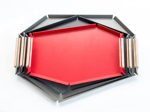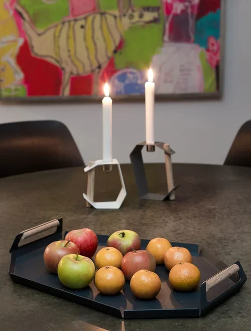 The Vök trays are three asymmetrically folded forms. They can be used separately and stored together to create a space saving solution.